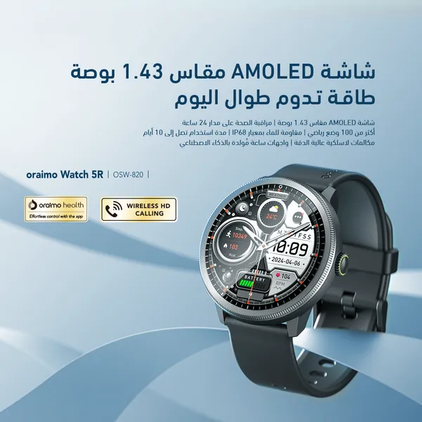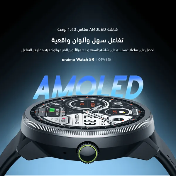 ساعة سمارت اورايمو Watch 5R، مقاس 1.43 بوصة، لايت كروم – OSW-820
