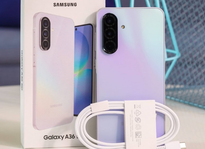 هاتف Samsung Galaxy A36 – سلك USB من نوع Type C – دبوس معدني – كتيبات دليل بدء الاستخدام السريع – ضمان الهاتف .
